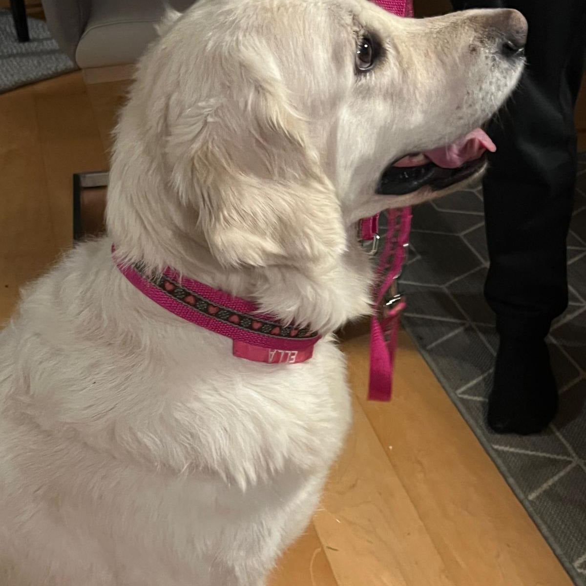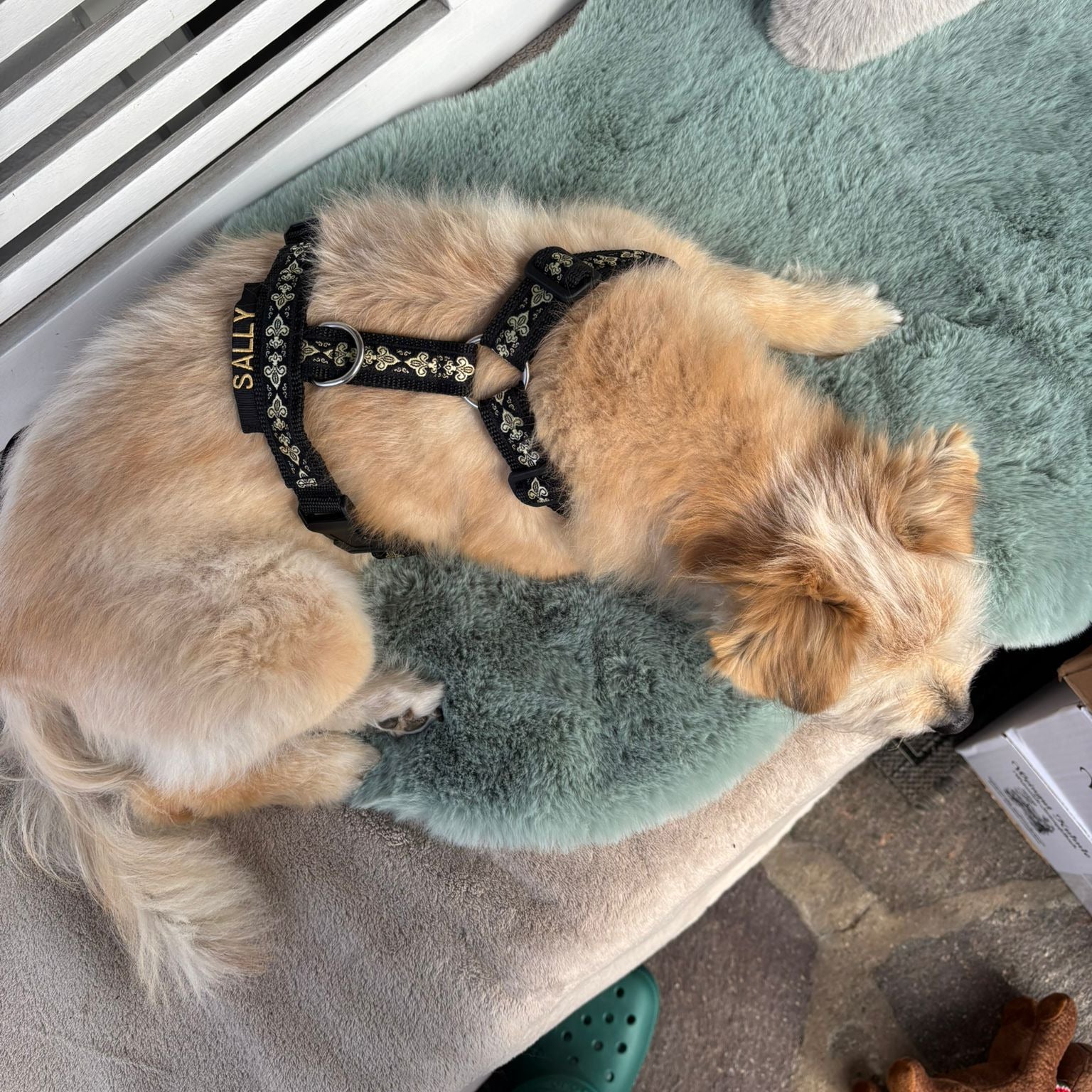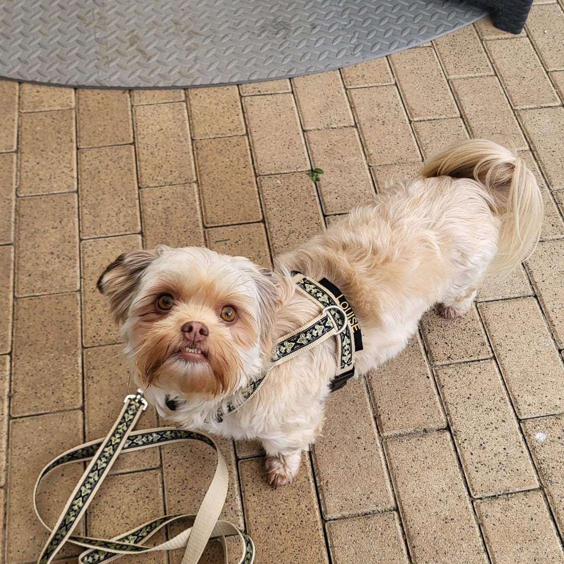 Bella mit ihrem neuen Geschirr aus der Golf Kollektion