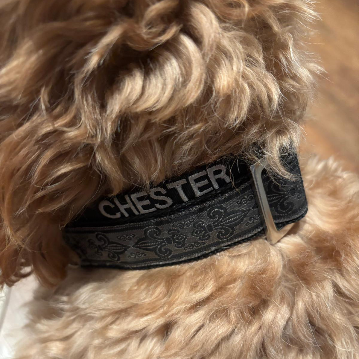 Edel, trägt Theo sein Halsband